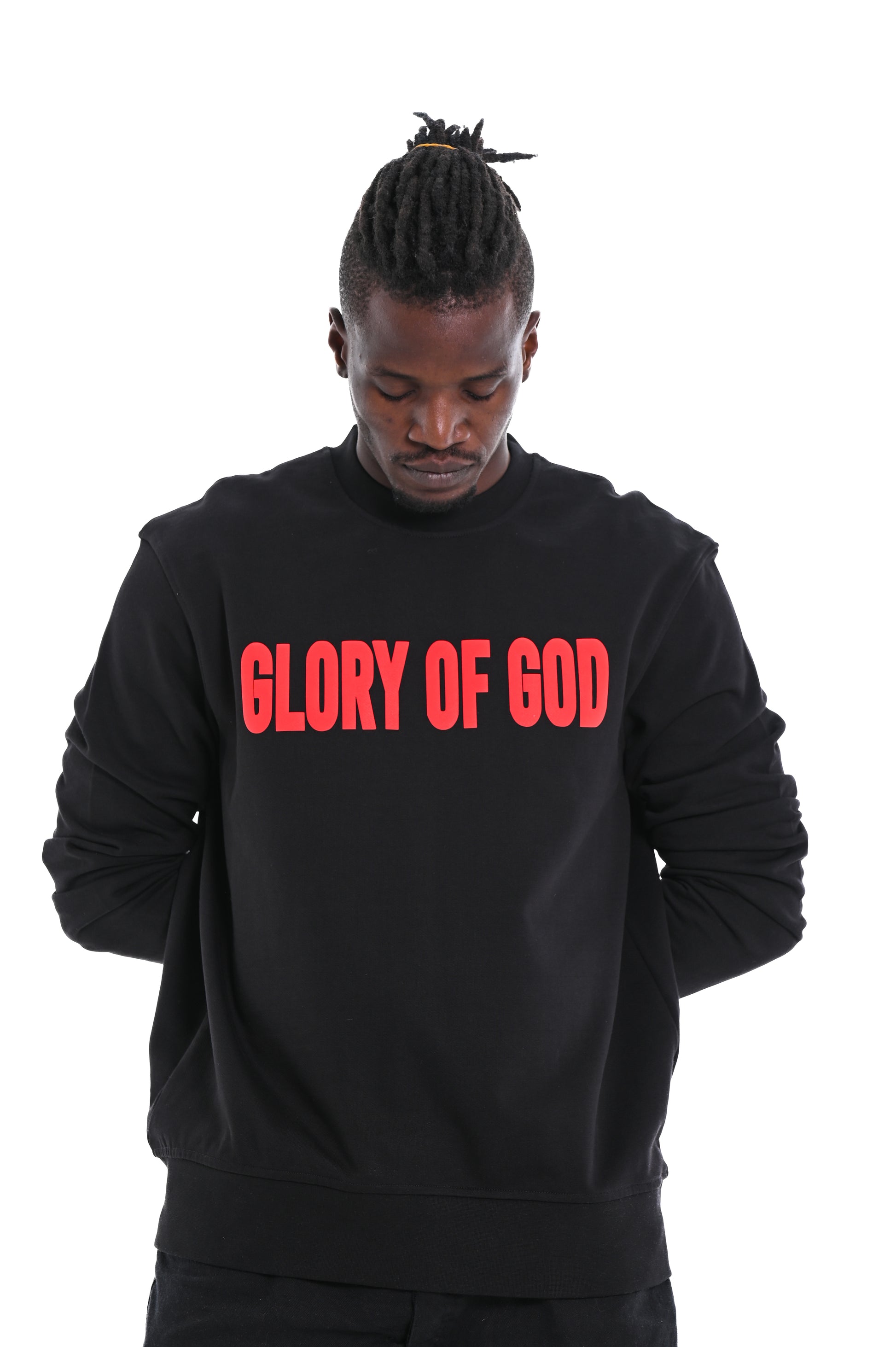 Glory of God Oversized Sweatshirt is made of 100% ultra-soft cotton, providing great comfort and long-lasting durability. This black sweatshirt has a striking "Glory of God" pattern. The relaxed, oversized fit gives it a comfy, laid-back vibe, and the ribbed cuffs and hem provide a secure fit. This sweatshirt is ideal for everyday use, whether layered or worn alone.