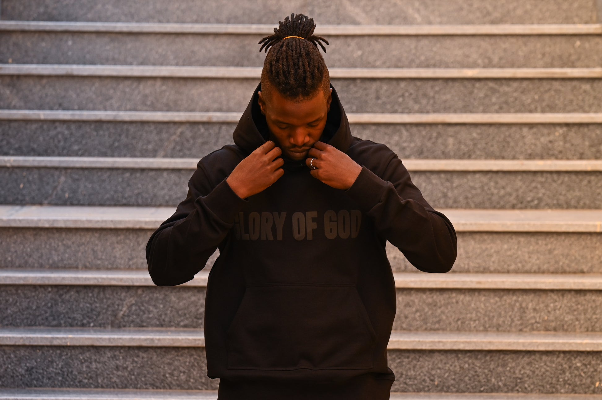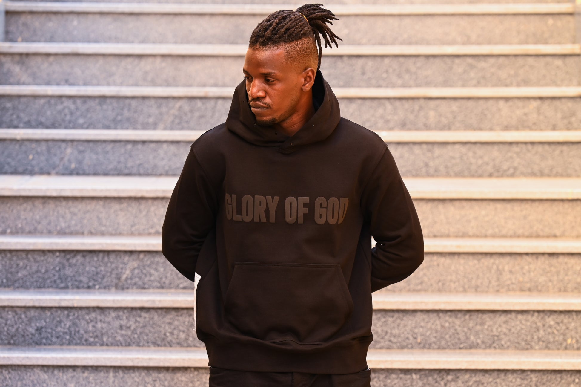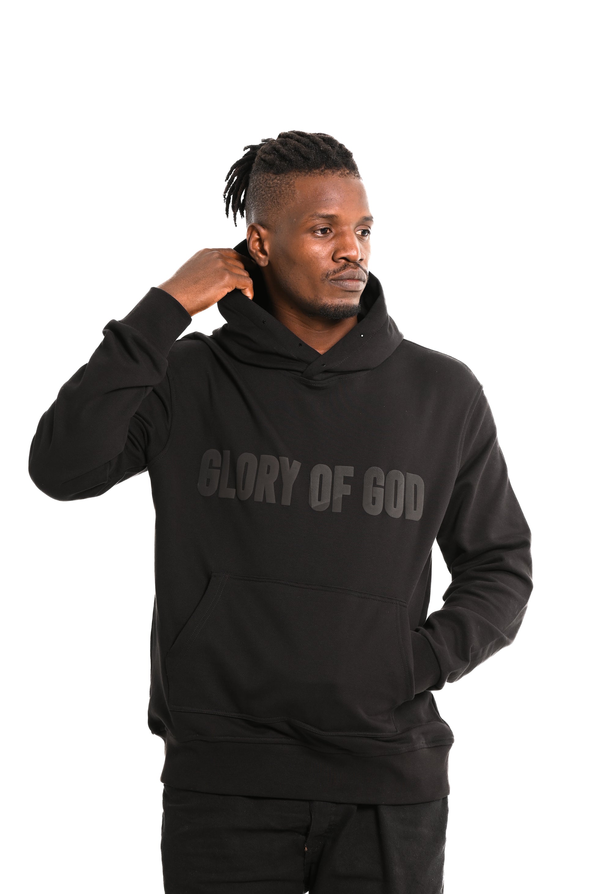 Glory of God Oversized Hoodie - All Black made of 100% ultra-soft cotton, which ensures maximum comfort and durability. This elegant piece is practical thanks to the adjustable hood and roomy front pocket, making it ideal for comfortable days or layering up in cooler weather.