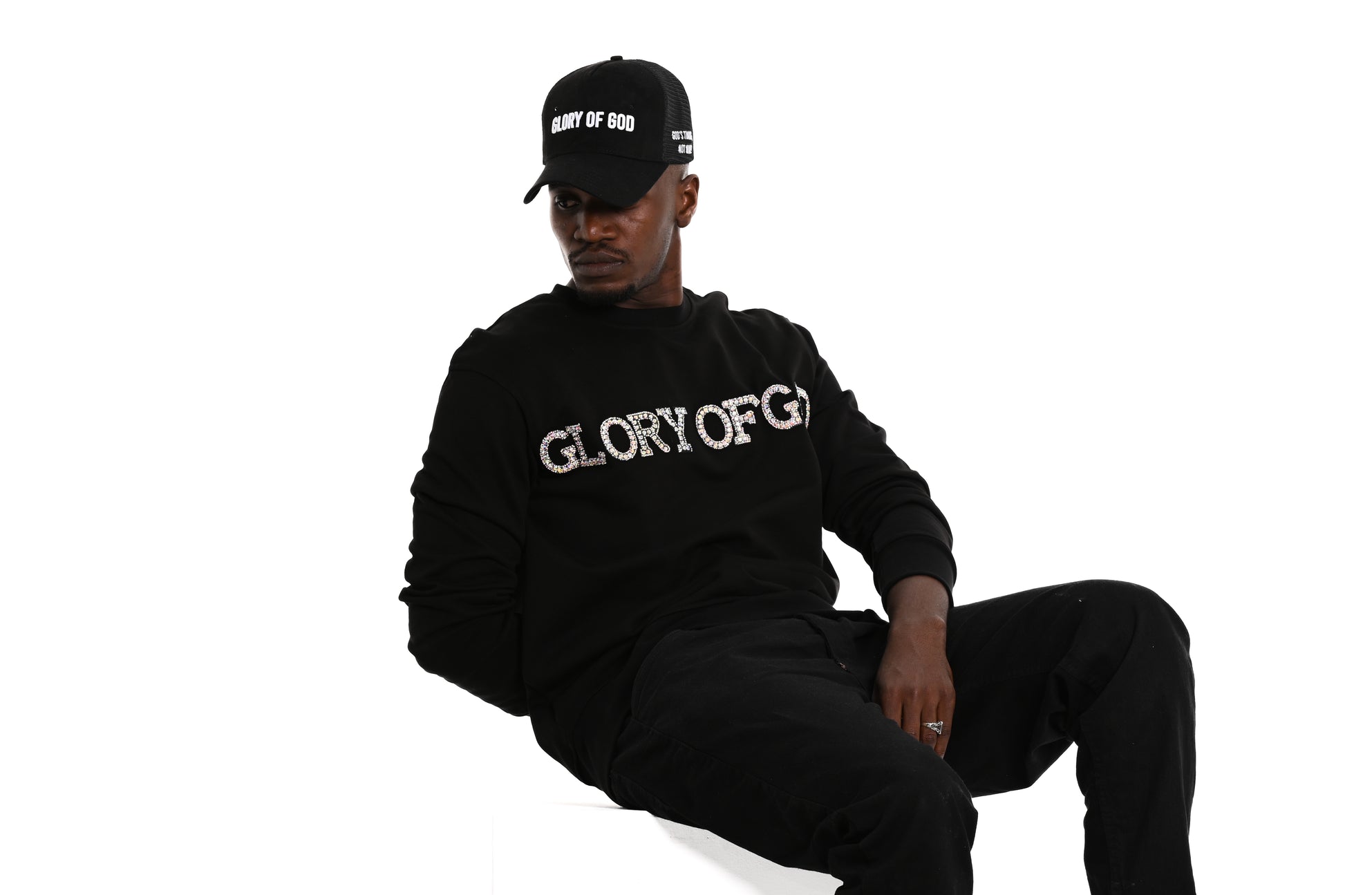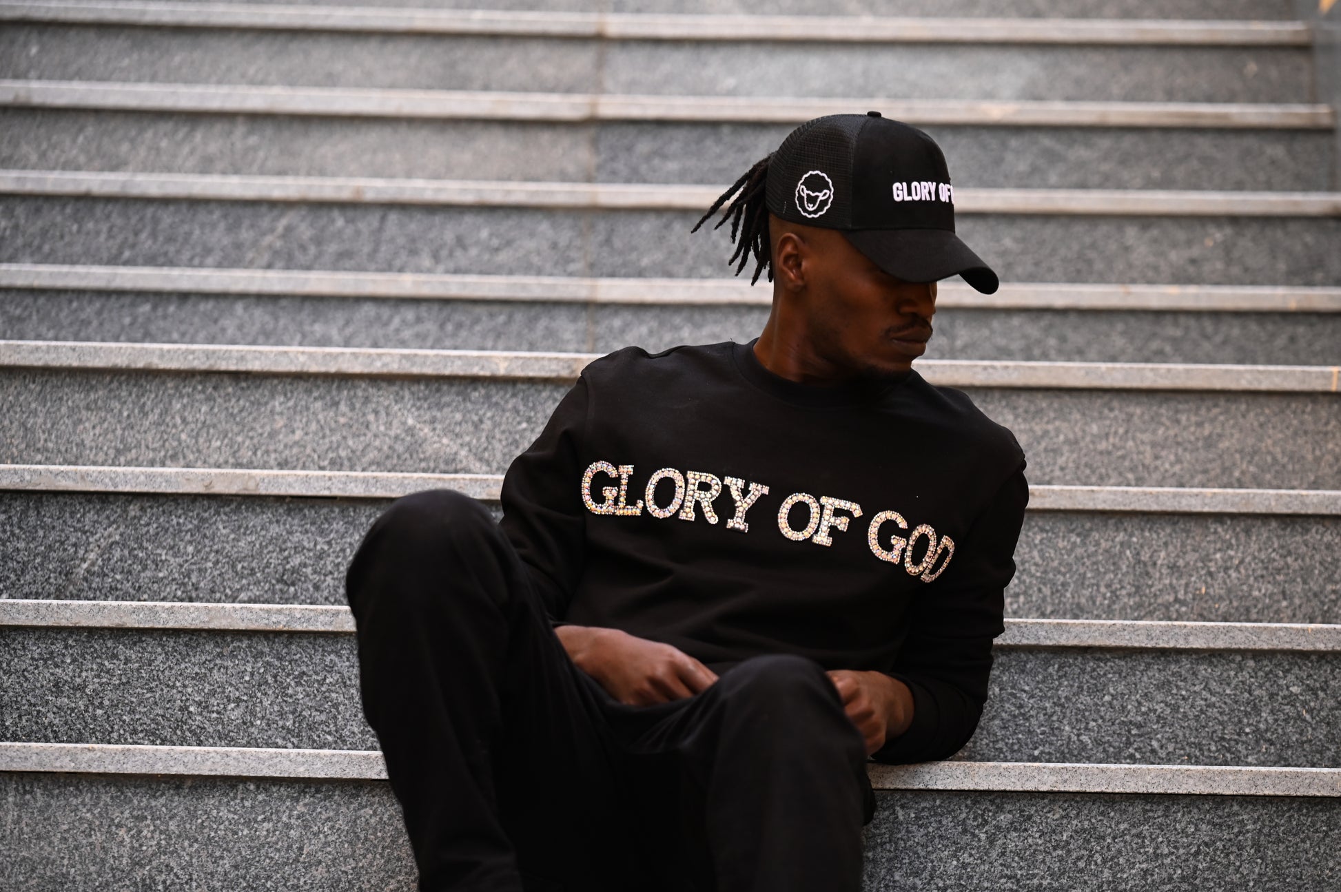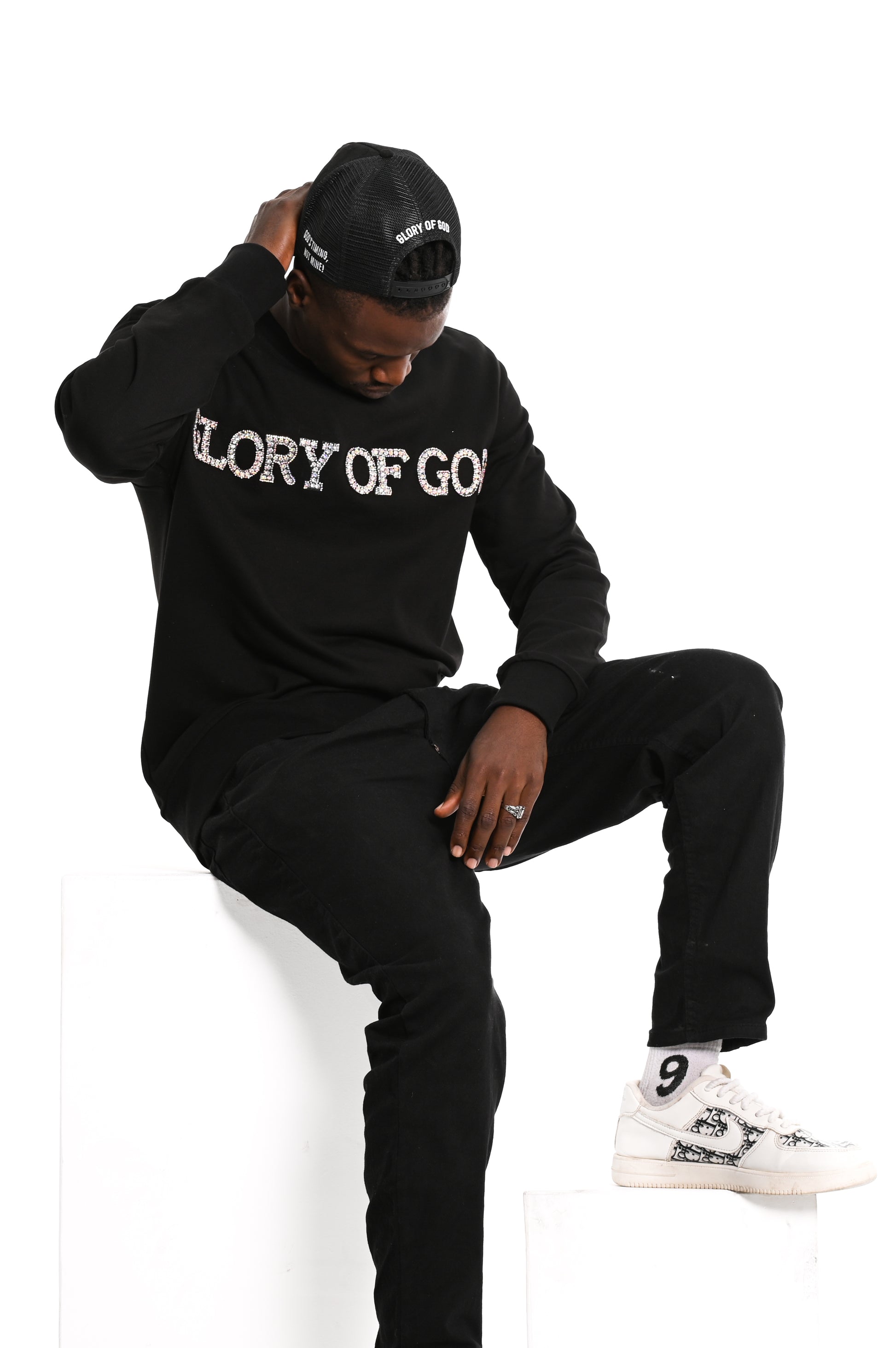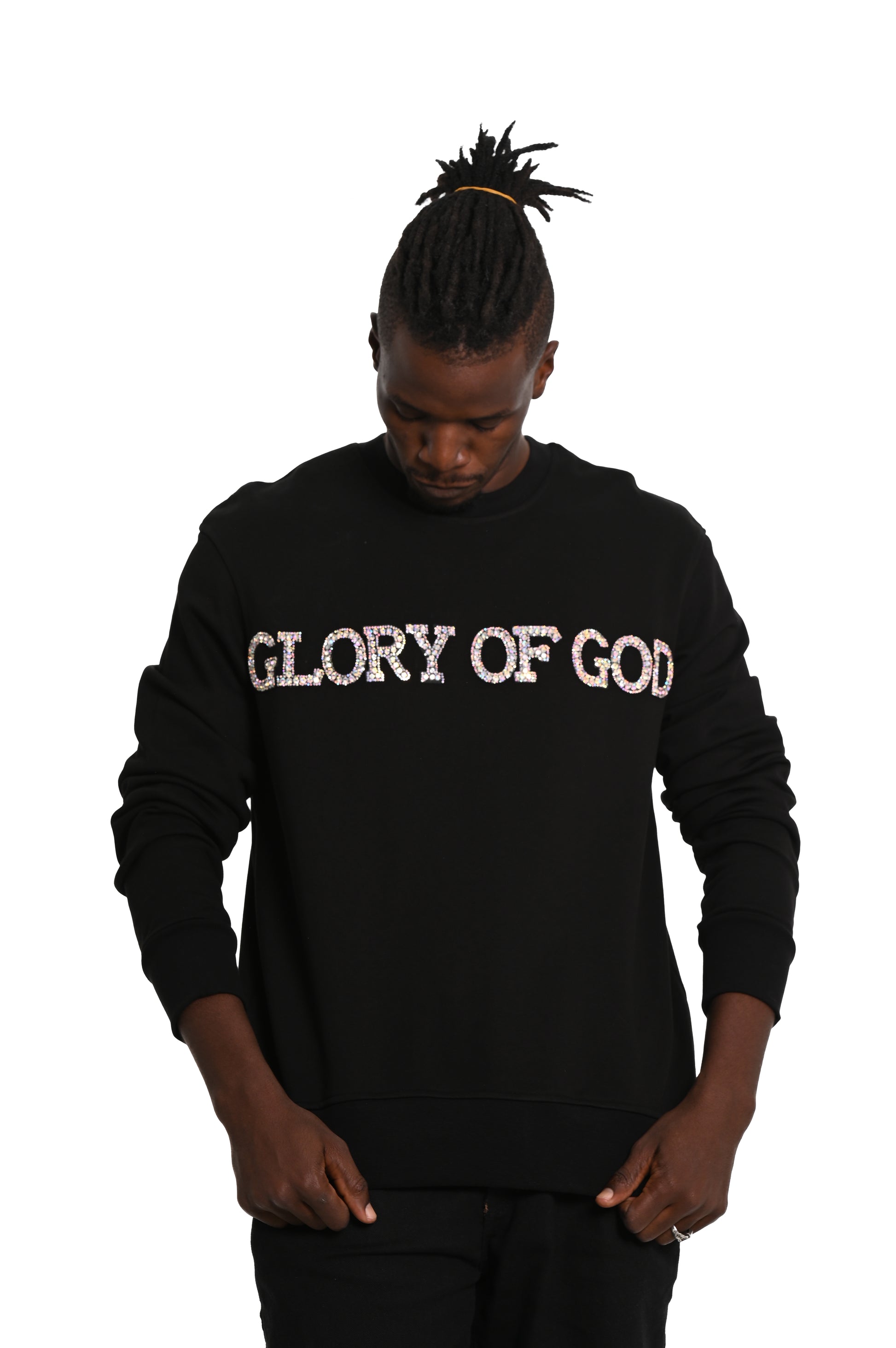 Glory of God Oversized Sweatshirt- Black- rhinestones print