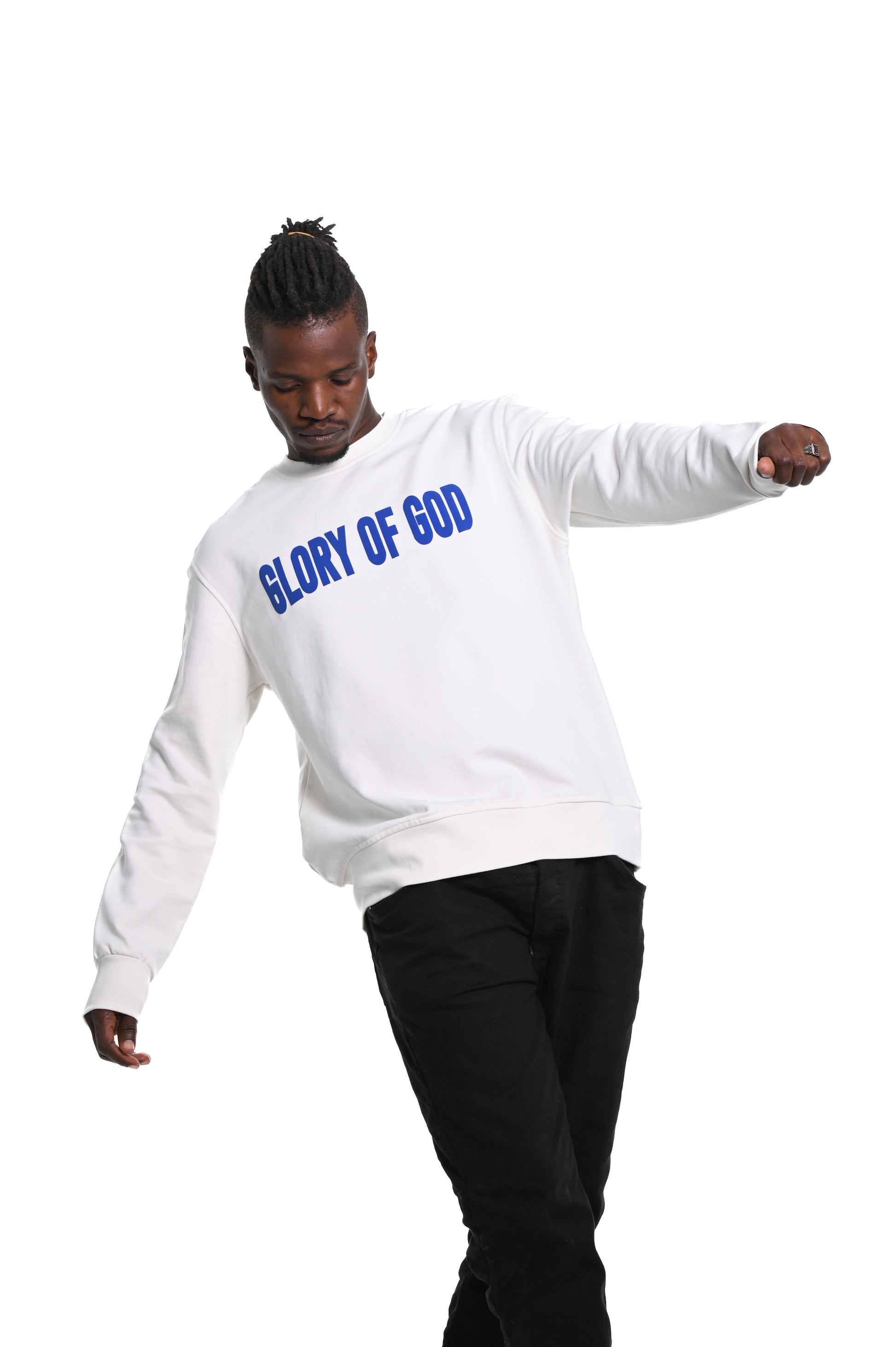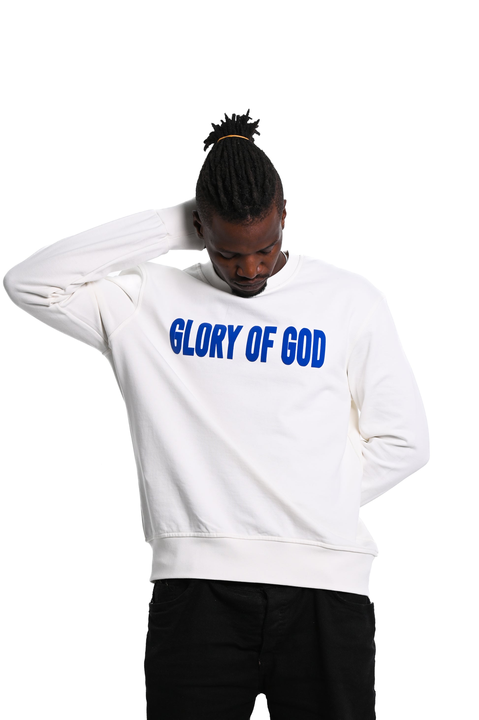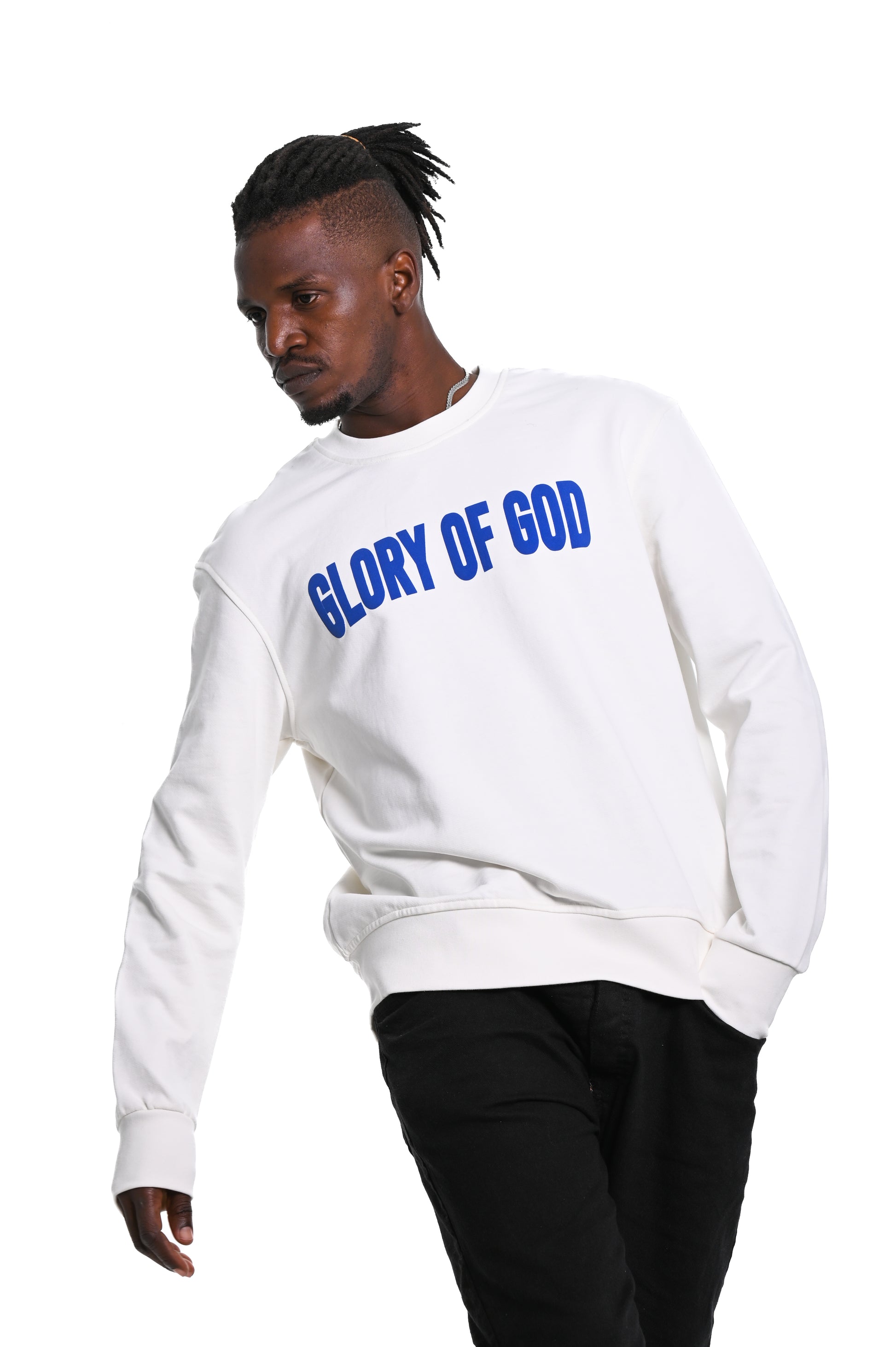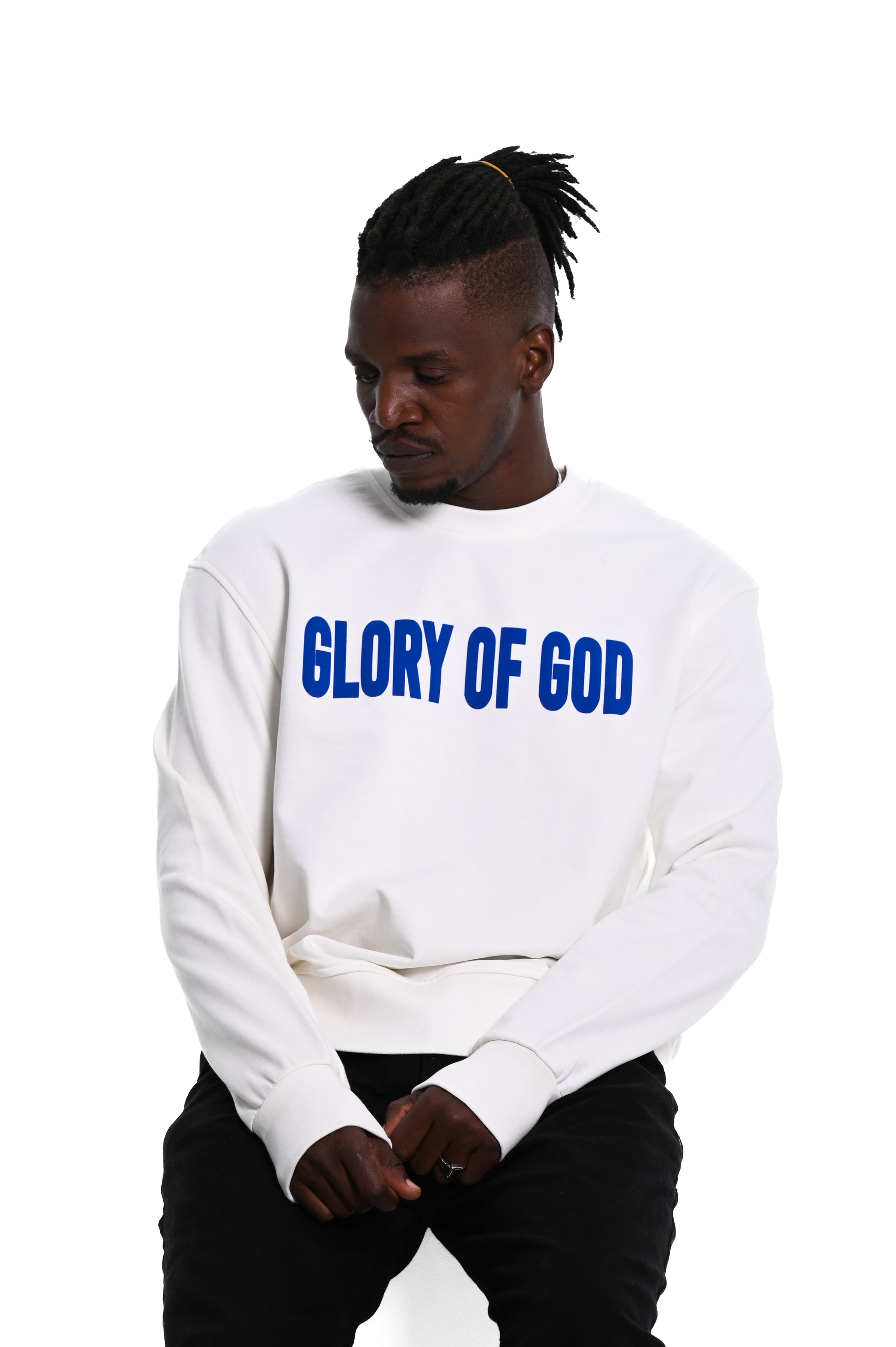 Glory of God Oversized Sweatshirt- White- Blue print