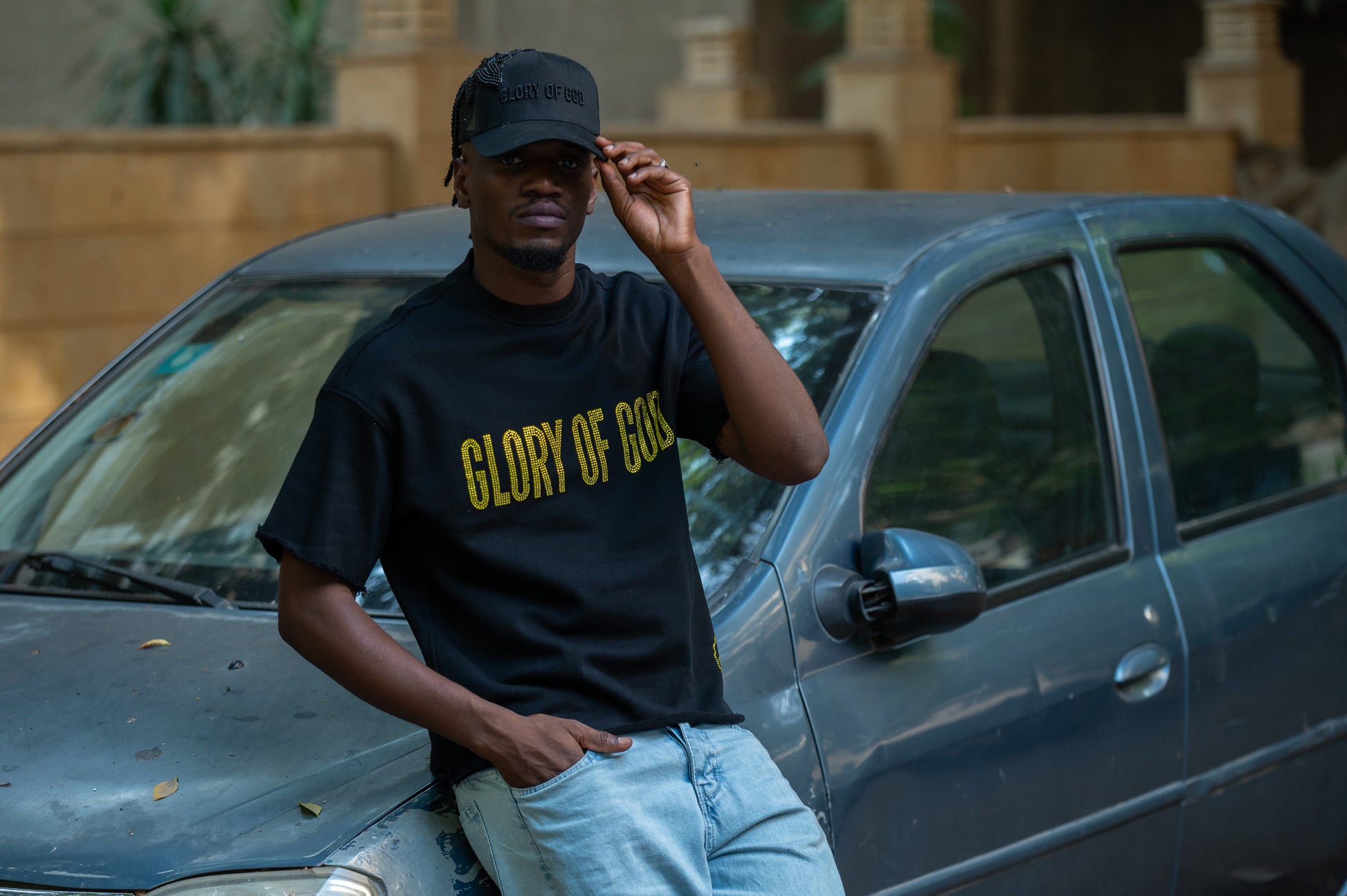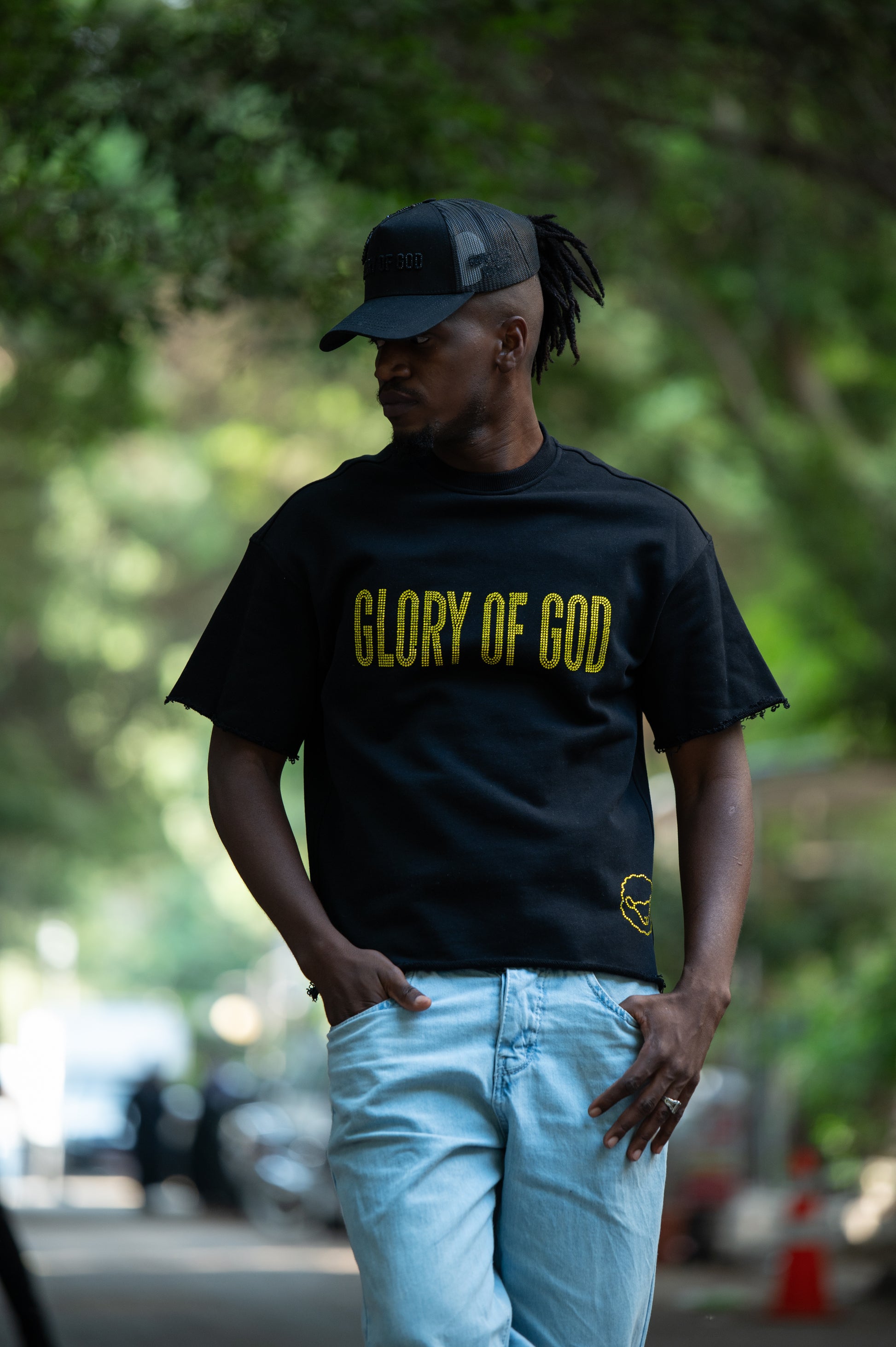 Make a bold statement of faith with the Glory of God Oversized Tee. Crafted from premium cotton, this black t-shirt features stone yellow lettering that reads "GLORY OF GOD" across the chest a powerful declaration of purpose and praise. The relaxed fit and raw-edge sleeves offer a modern, streetwear-inspired look, while the subtle gold emblem near the hem adds a touch of unique flair.